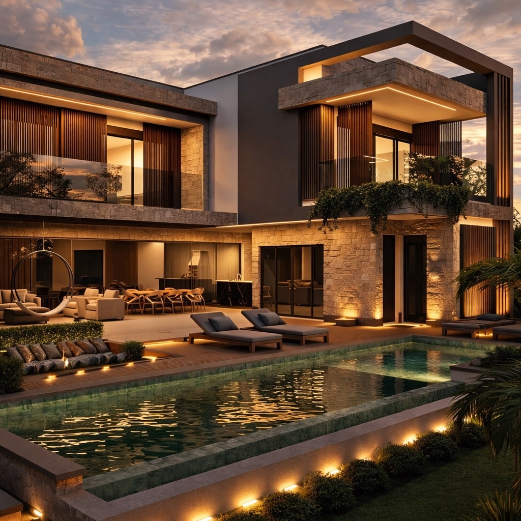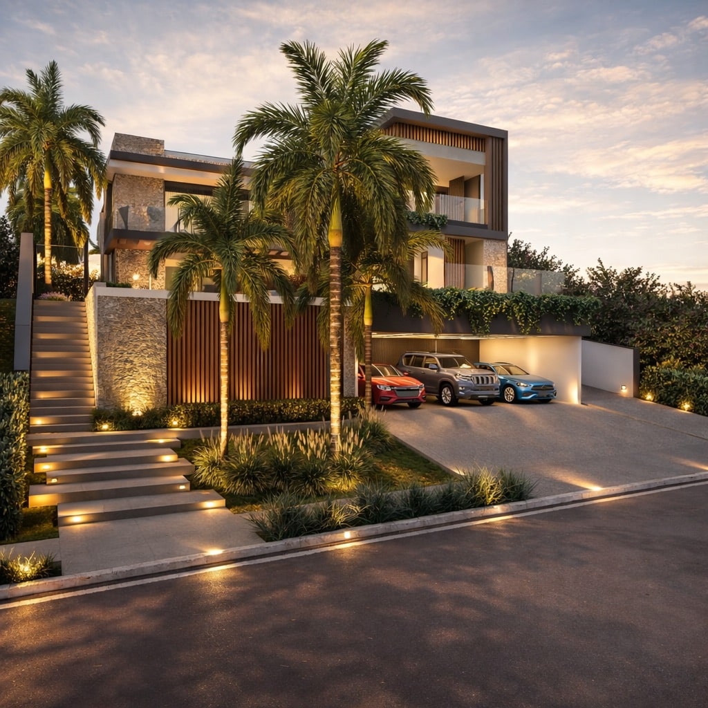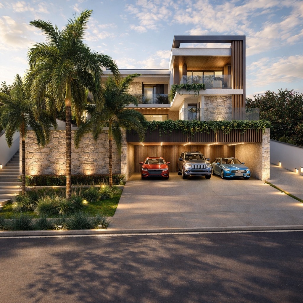 Residência localizada no condomínio Green Park em Itupeva, em terreno aclive de 850m² no estilo minimalista. O grande destaque desse projeto está na área externa e piscina na frente do terreno, logo acima da garagem que é um diferencial e proporciona ao cliente uma visão de dentro da casa para a área externa e também para o condomínio.